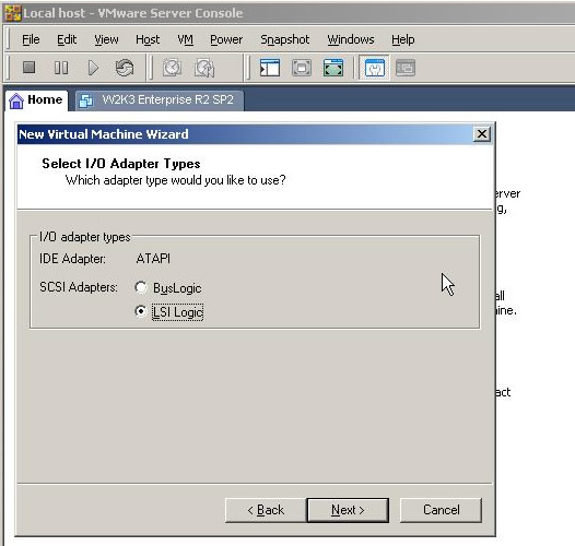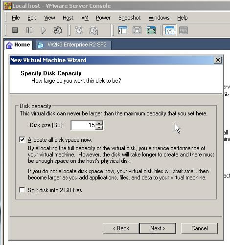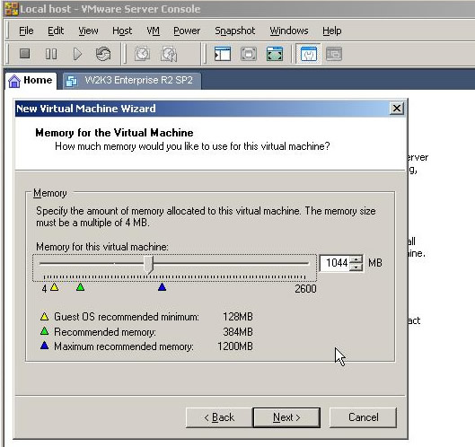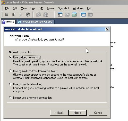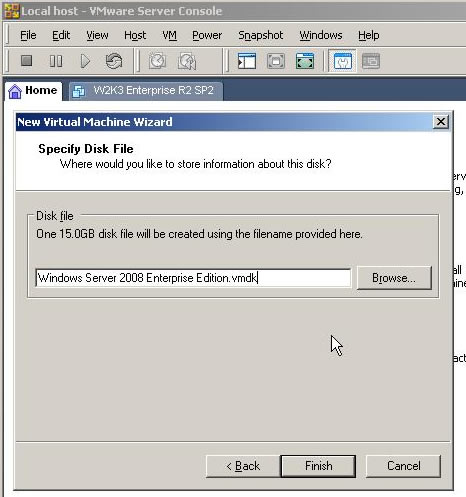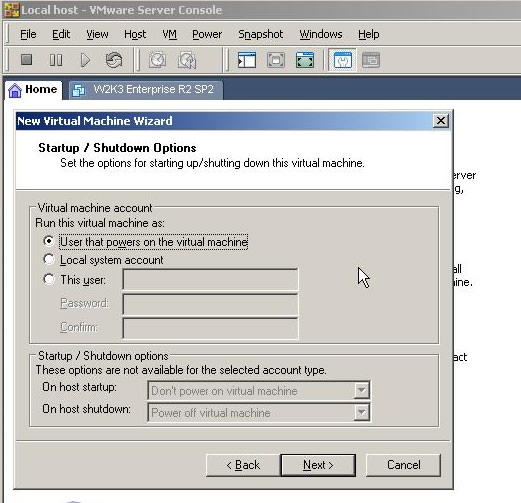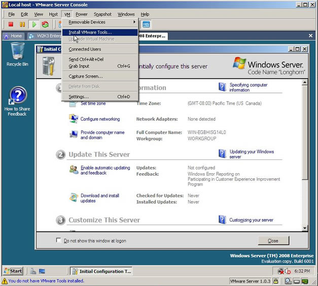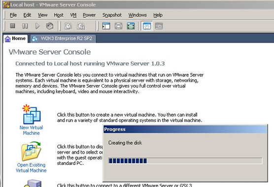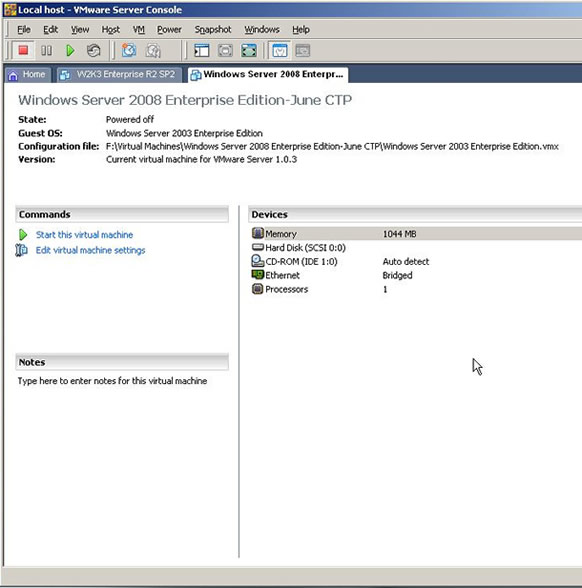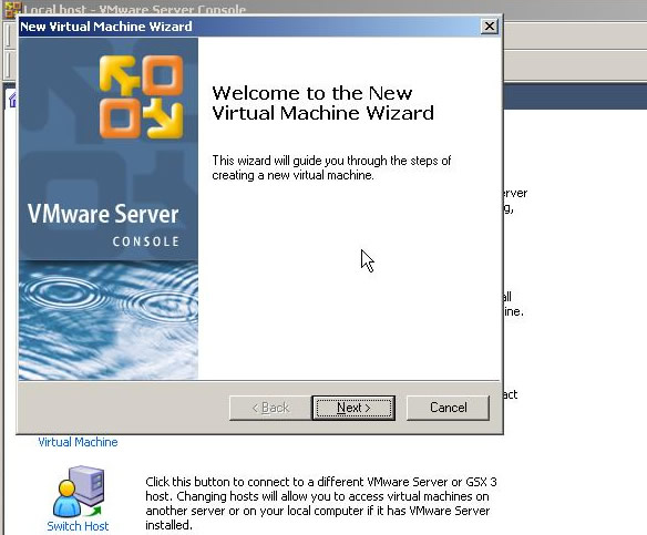 the VMware Server Console on the Host PC. The web interface has a much more limited